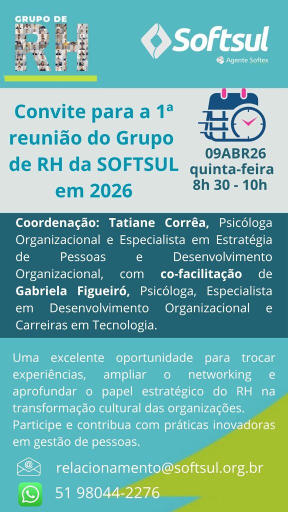 O Grupo de Recursos Humanos da SOFTSUL retoma suas atividades em 2026 com o objetivo de fortalecer a troca de experiências entre profissionais de gestão de pessoas das empresas associadas.