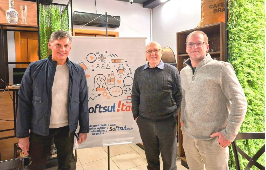 Na tarde de 3 de julho, a Softsul realizou mais uma edição do Softsul!talks, promovendo um debate sobre internacionalização de empresas de tecnologia. O evento, coordenado por André Boger, CEO da empresa associada Math Group e membro do Conselho Empresarial da entidade, reuniu especialistas para compartilhar experiências e estratégias voltadas ao mercado americano.